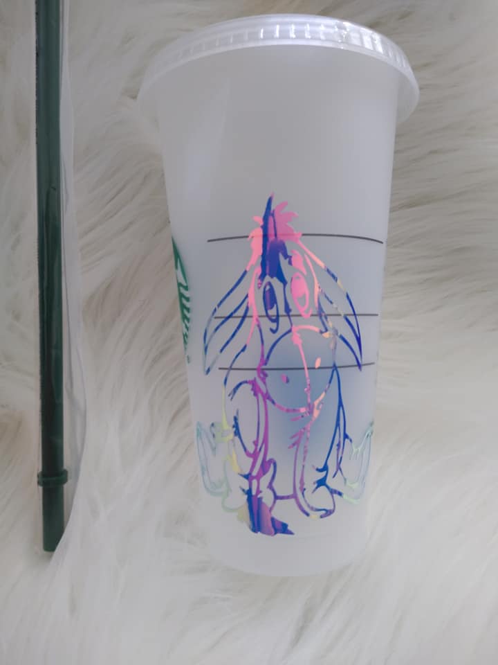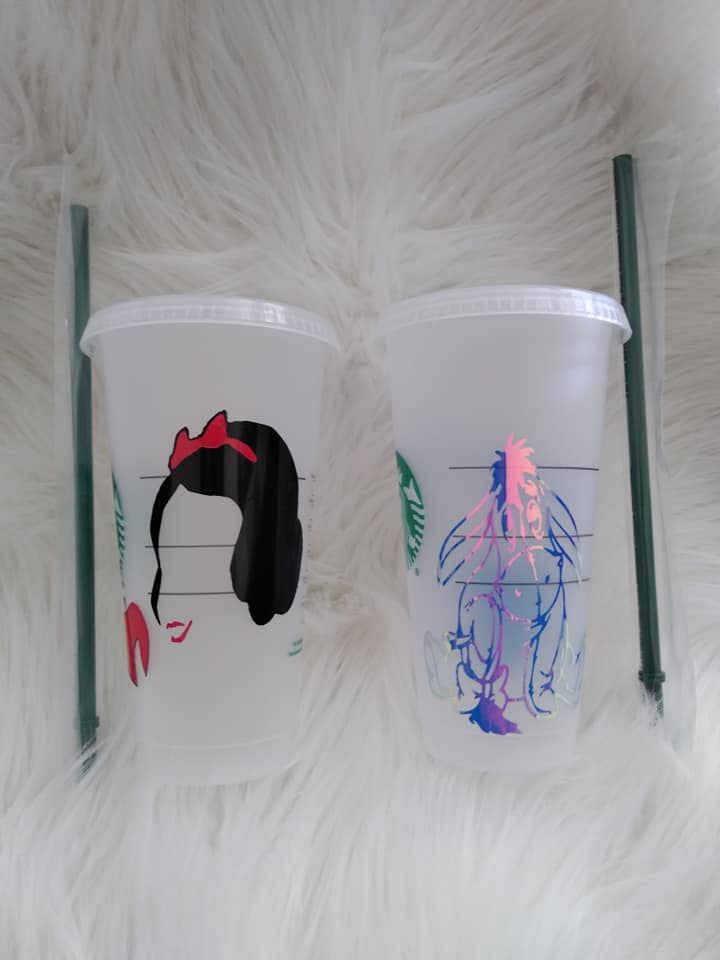 Personalized plastic reusable 24 oz cups your choice of Snow white or Eeyore Please provide name you would like on cup at checkout made to order ships in 3 to 6 days