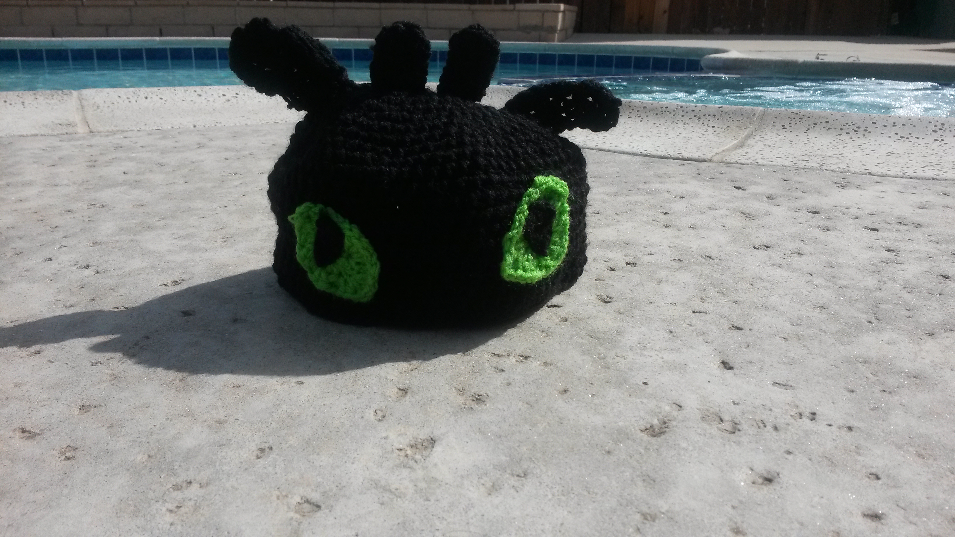 How to train your dragon's toothless inspired beanie. Perfect for fall and winter. Hand crochet in black with green eyes.