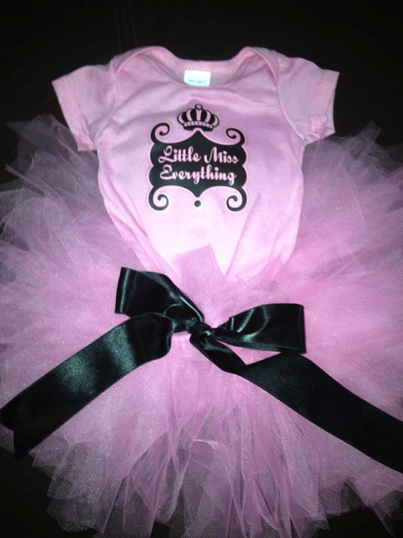 Pink onsie with pink tutu and black ribbon the tutu is not attached to onesie