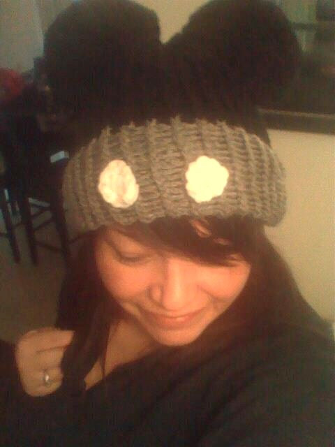 Hand knitted steamboat Willie inspired beanie made with soft black ad grey yarn with 2 crochet white buttons please visit my shop for steamboat Willie scarf made to order