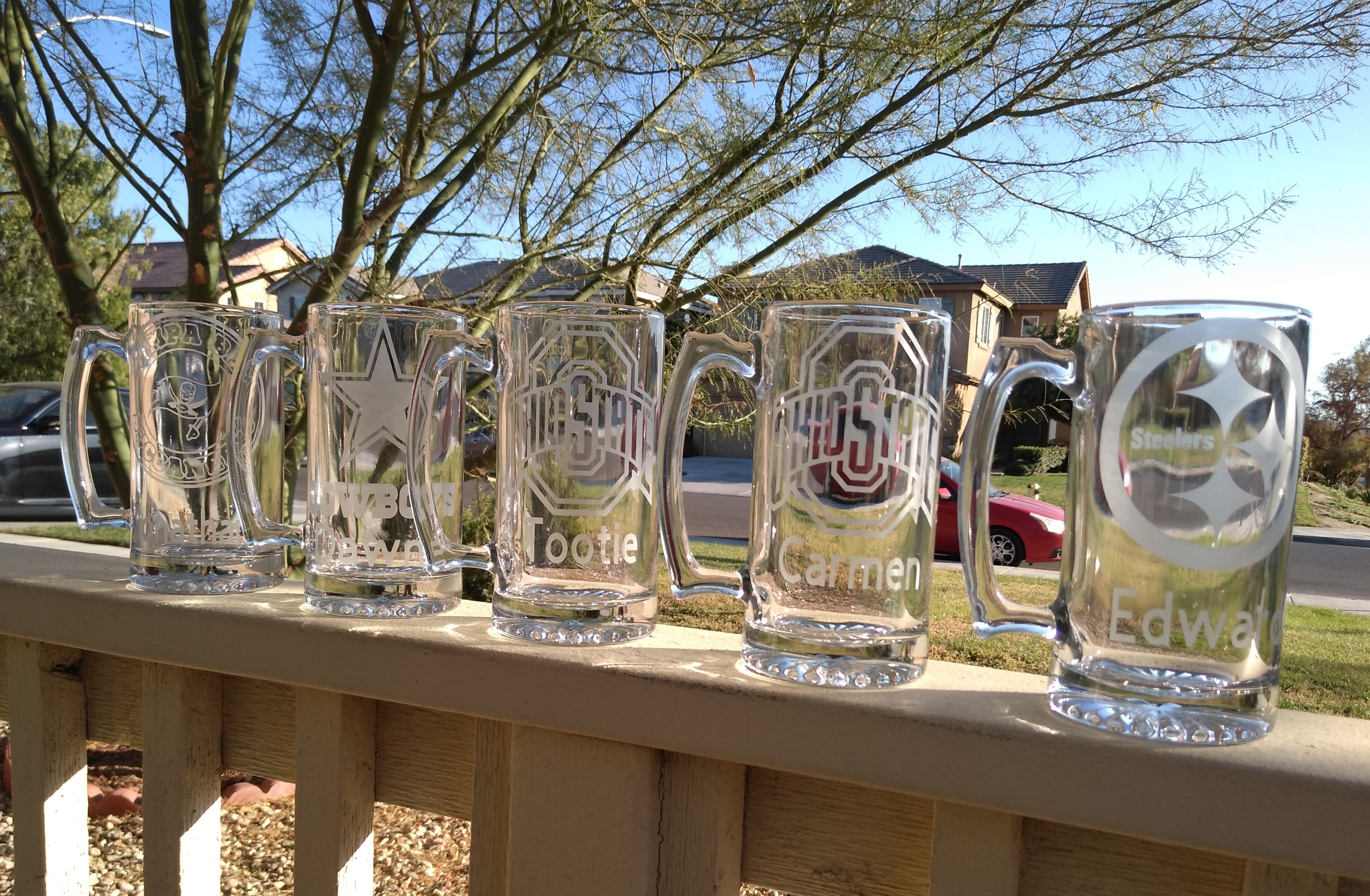 Who's your favorite sports team? let me know here are some samples Dodgers , Steelers, Oho State, Dallas Cowboys, Tampa Bay Buccaneers if you don't see a team or a theme you like please let us know we can do just about anyone you would like. name can be added to cup for $3 More please be sure to add name you would like in notes and please be sure your email address is correct.Made to order and orders take 1 to 3 weeks to finish and ship as we get closer to the holidays it can be a little longer.