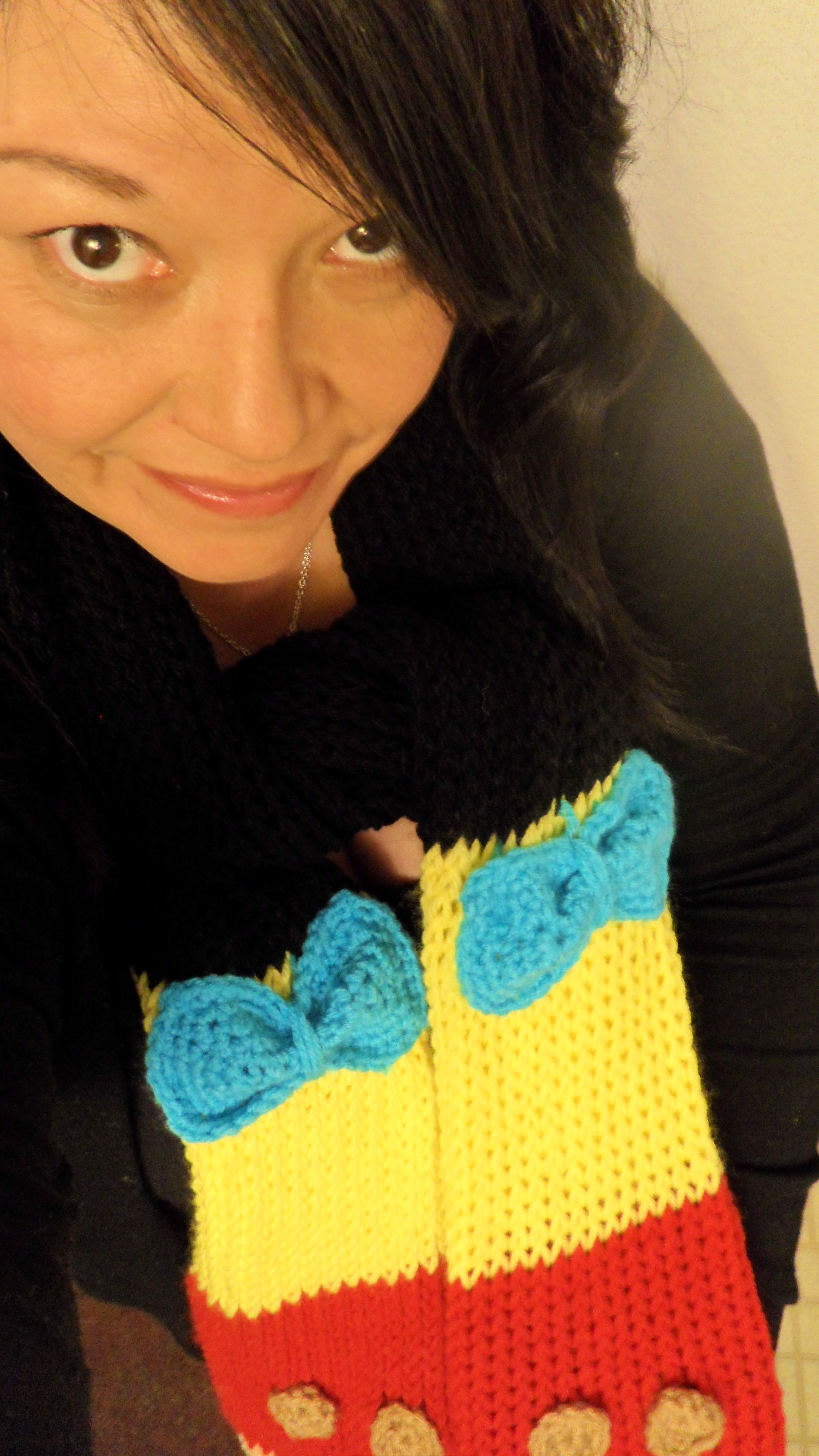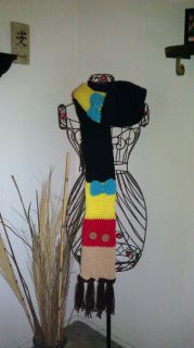 Hand knitted Pinocchio inspired scarf made with soft yarn .