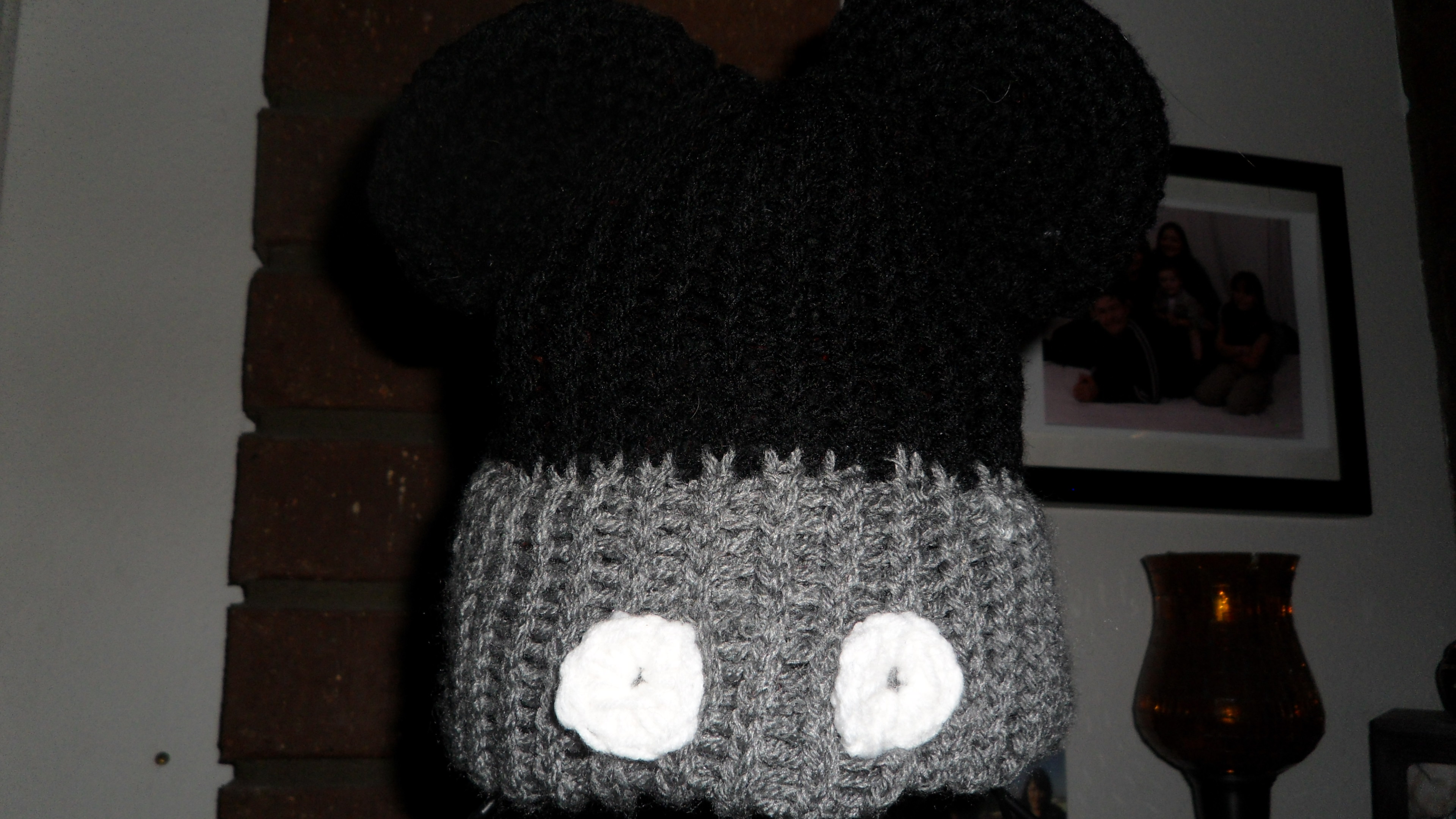 Steamboat Willie inspired beanie hand crochet black and grey beanie with ears This item is made to order and orders take 1 to 2 weeks