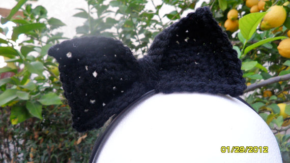 Hand knitted black bow on plastic black you pick the color bow you would like and let me know at check out headband made to order takes 1 to 3 week to get done and shipped out