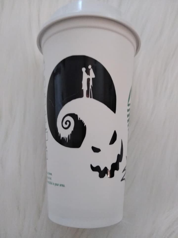 Starbucks reusable coffee cup 16oz .Nightmare before Christmas theme. Made to order orders take 3 to 6 days to finish and ship
