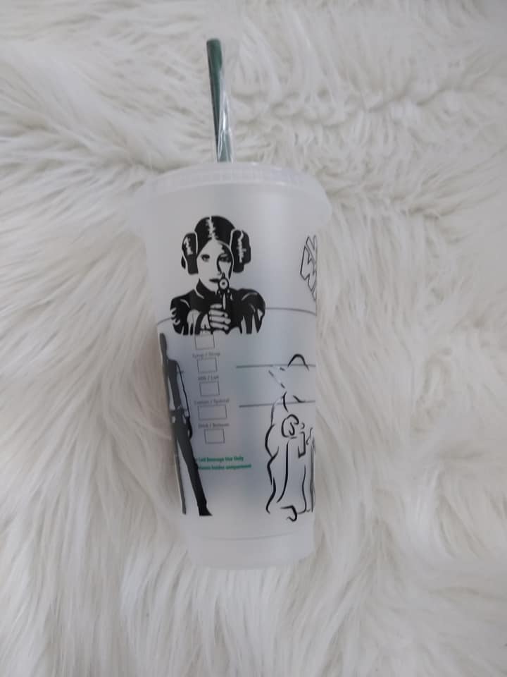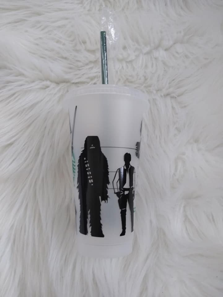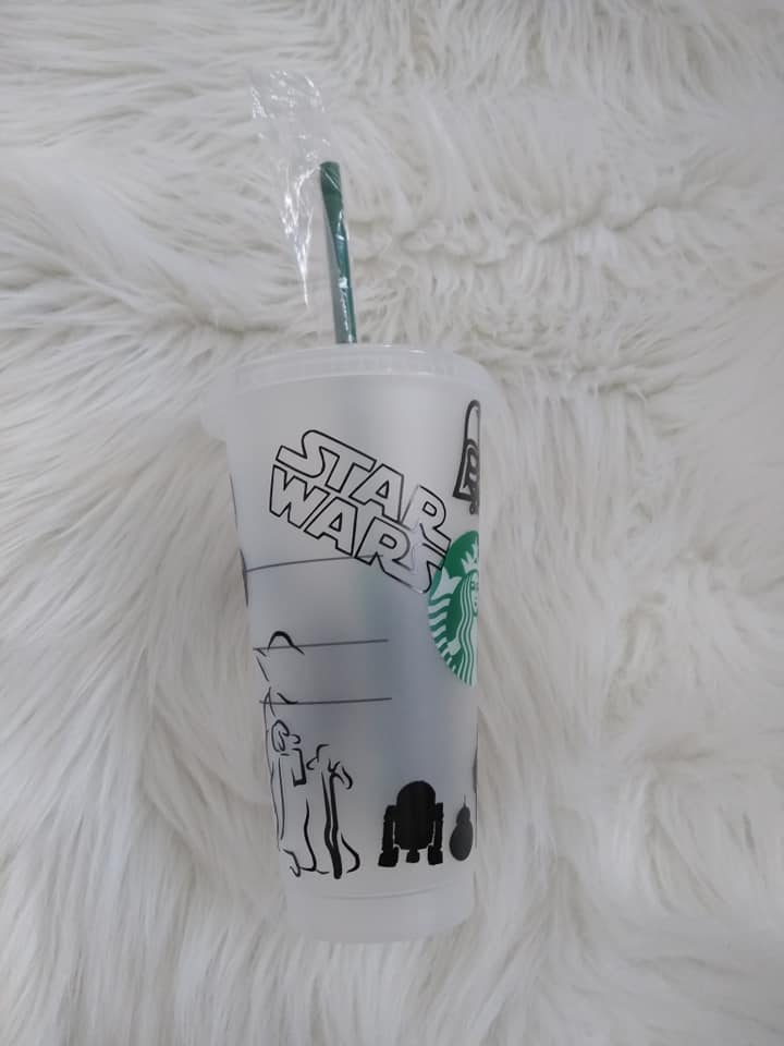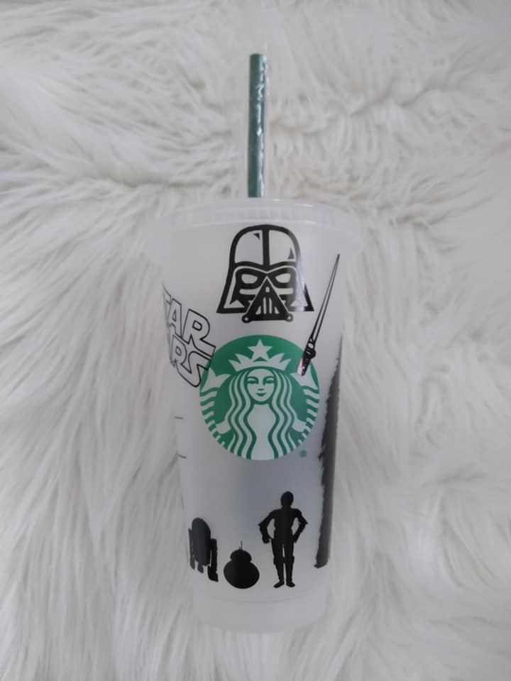 Starbucks reusable 24 fl oz cold drinking cup with a Star Wars theme. has images all around cup. Made to order orders take 3 to 6 days to finish and ship.