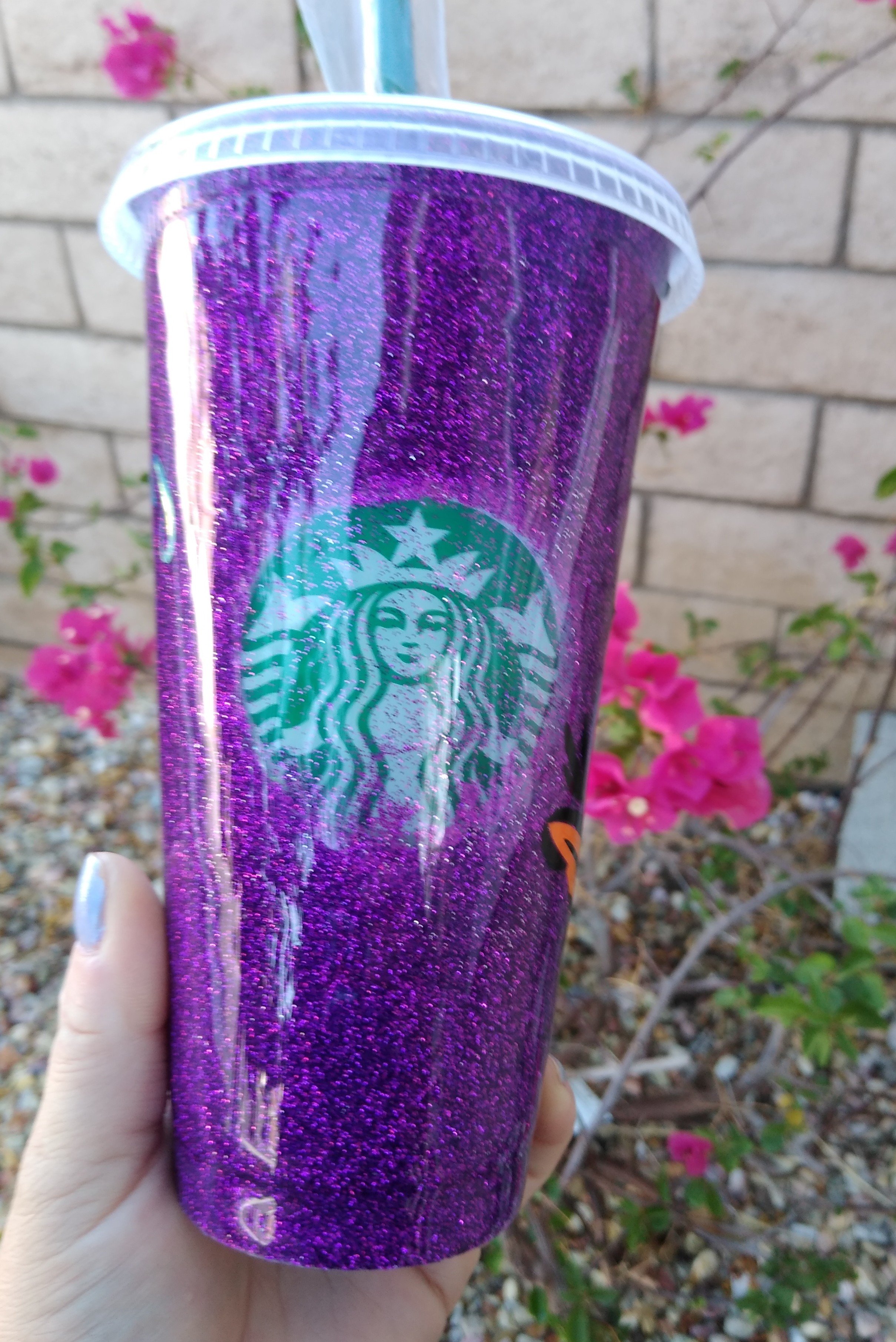 Starbucks reusable cup this one is in Daisy Duck theme your choice of glitter and also name can be added these are made to order they take 2 to 3 weeks to finish and ship