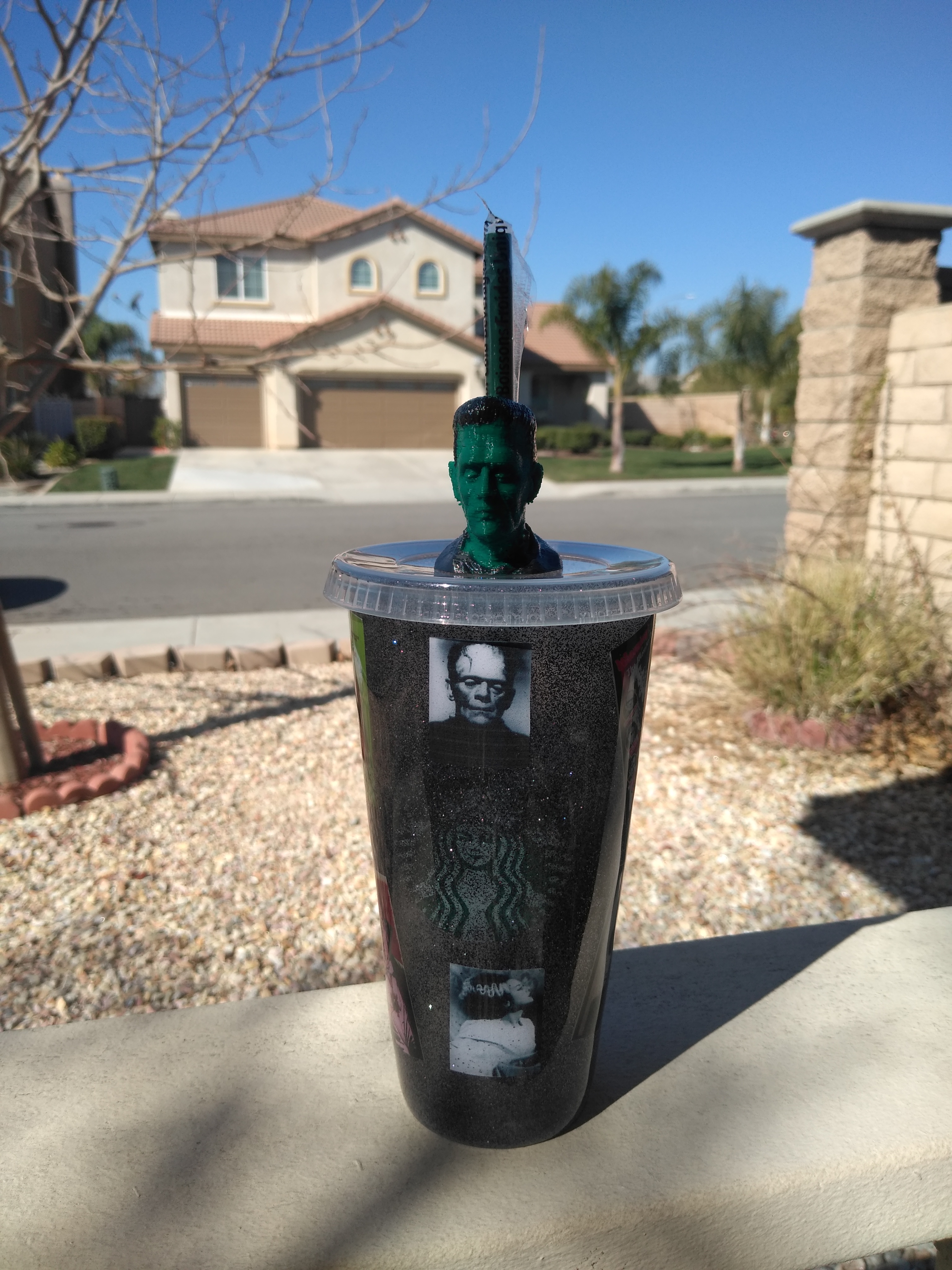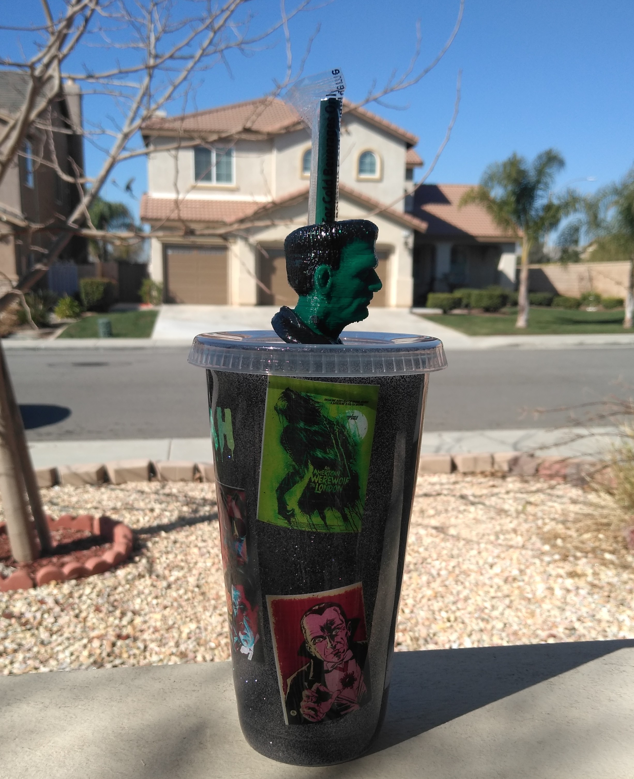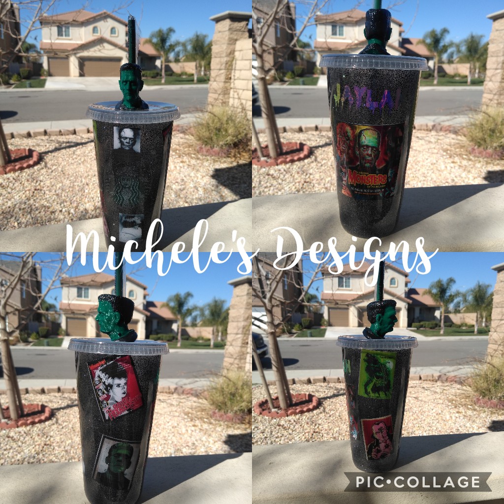 Starbucks reusable cup in Classic Monsters theme with black glitter and a Frankenstein Straw topper made to order and orders take 2 to 3 weeks to finish and ship. ***You do have an option to get the cup without a topper.****