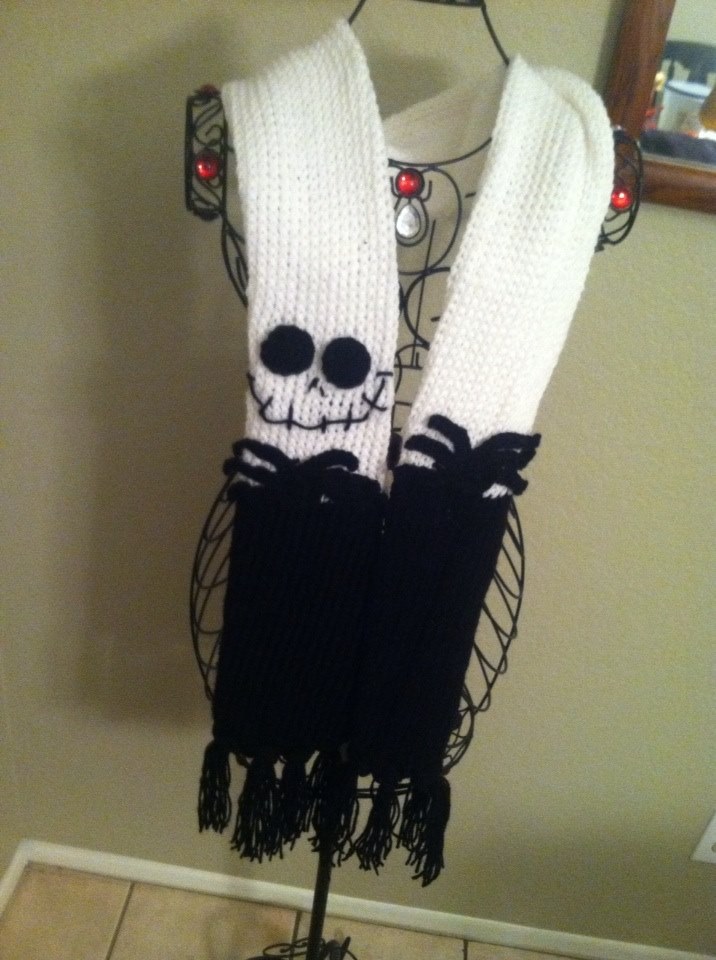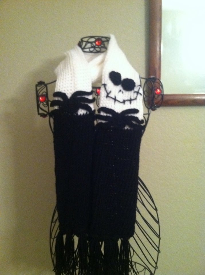 Hand knitted Jack Skellington and Sally inspired scarf made with soft yarn