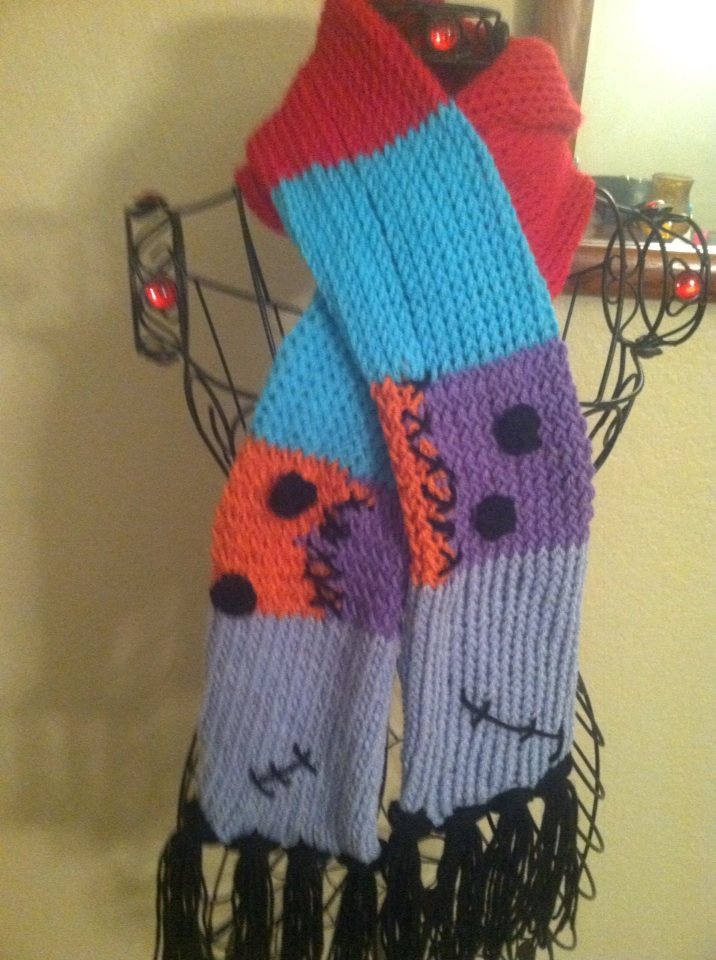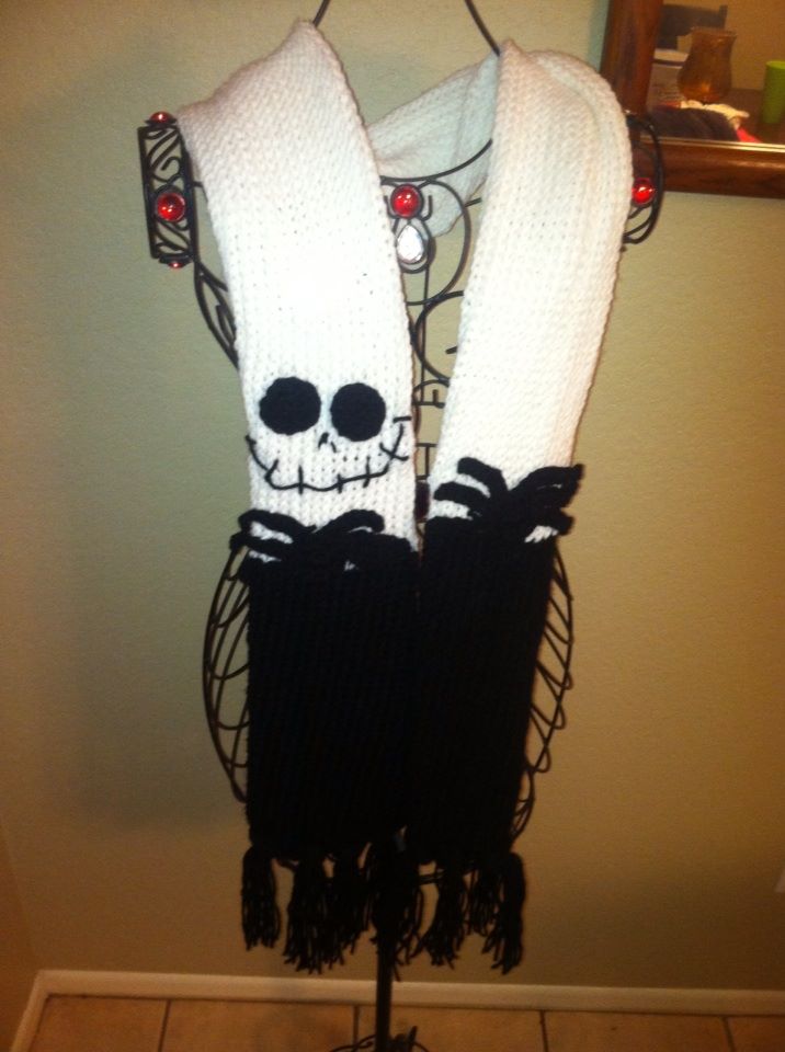Hand knitted Nightmare before Christmas inspired scarf made with soft yarn