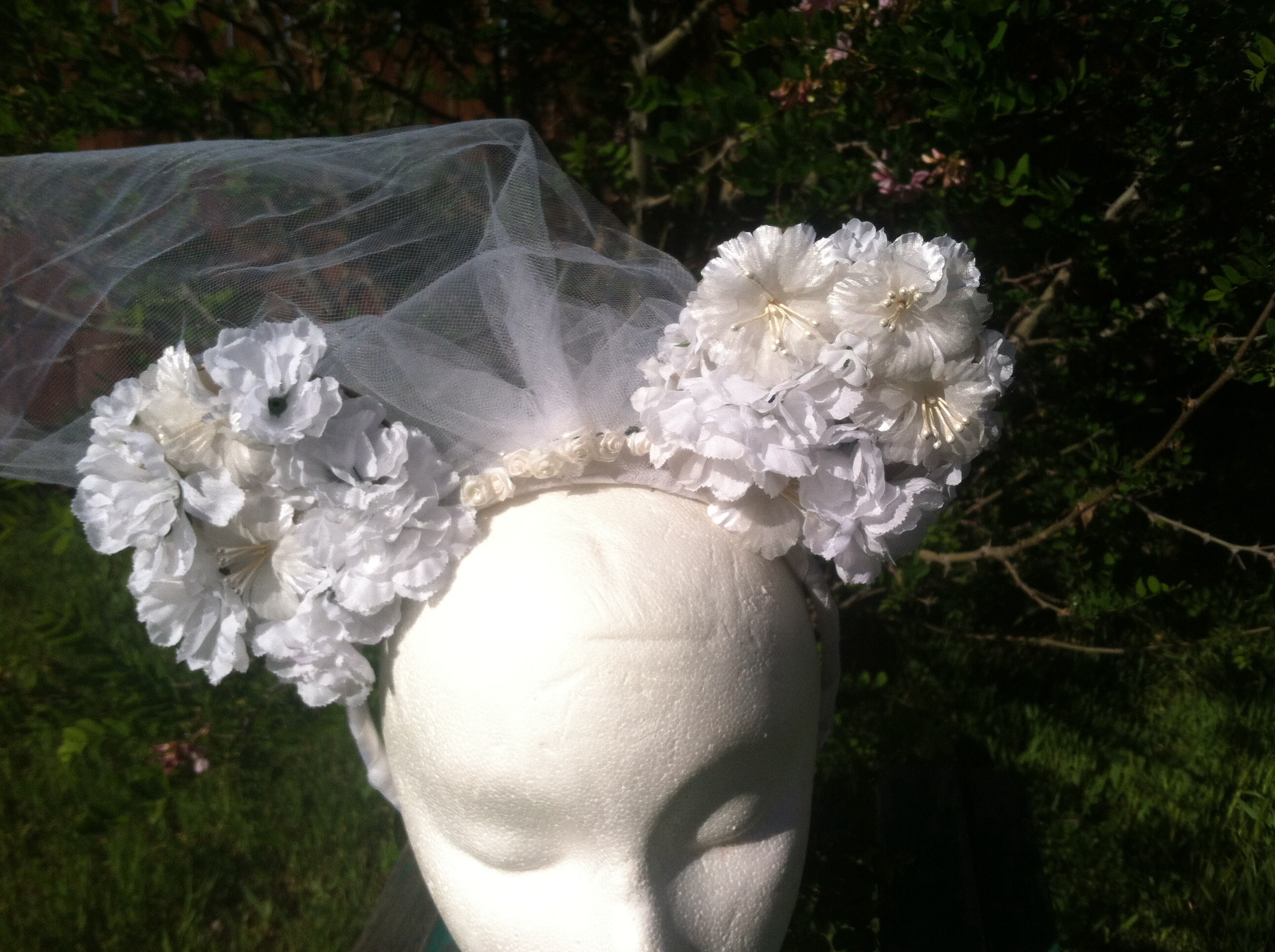 Disney inspired bride ears with vail Made with white flowers and tulle custom made if you would like a different color please let me know