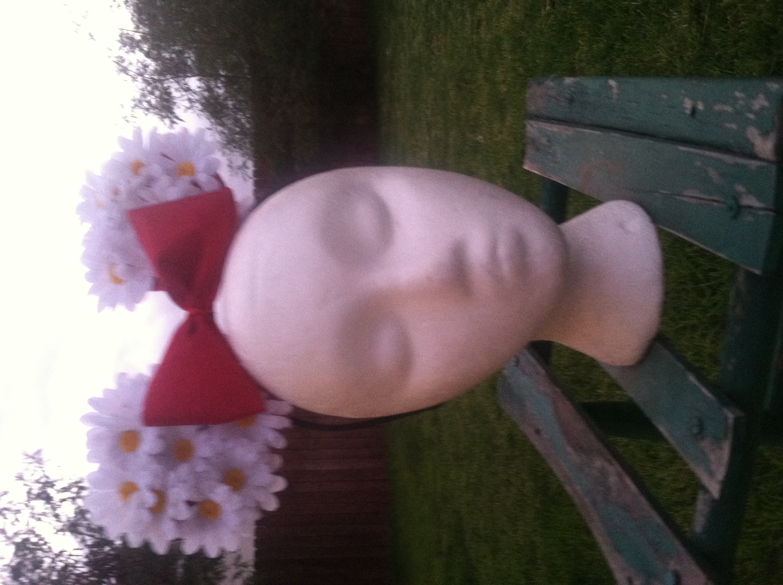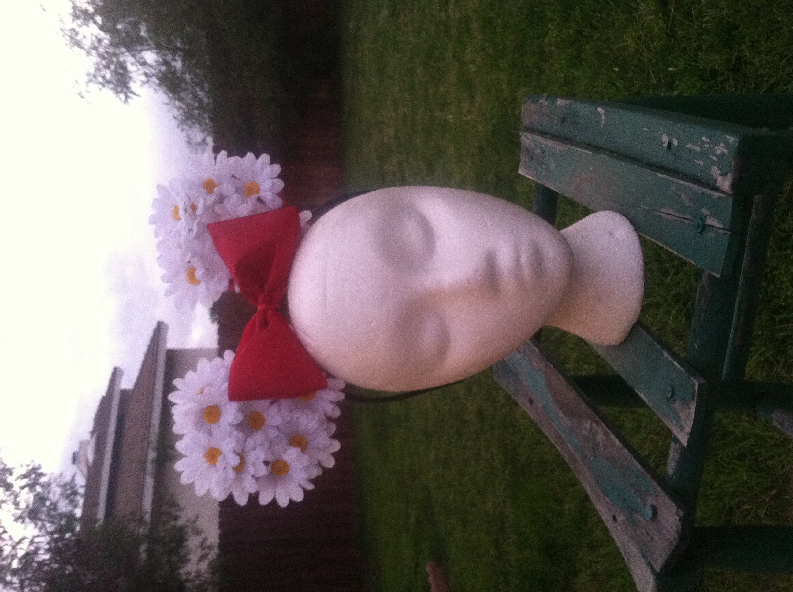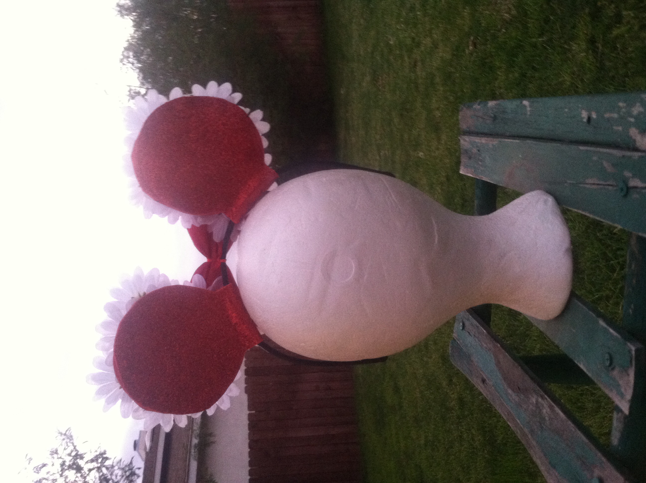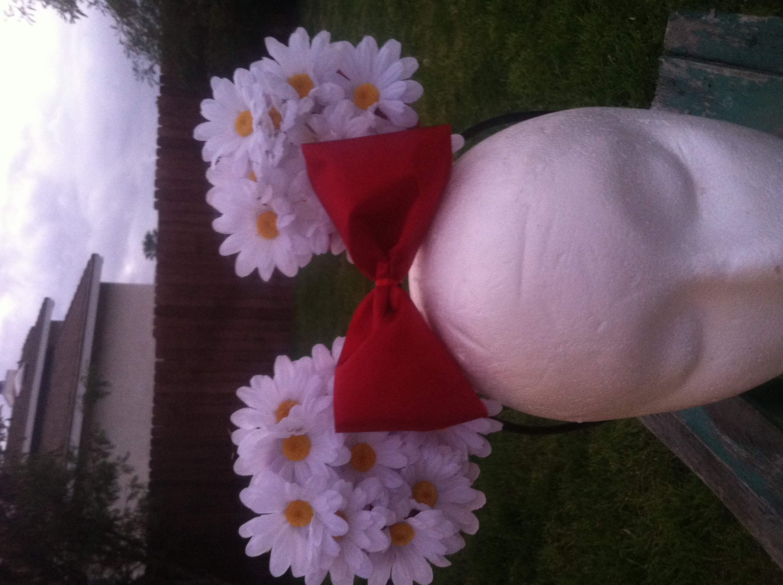 Disney inspired white ears with daisy flowers and red bow the back of ears are glittery red perfect for a spring and summer day at the park